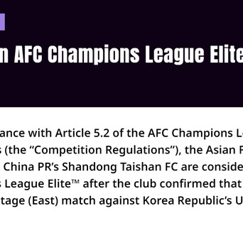 据亚足联官方网站2月19日公告,山东泰山阐述不进入对蔚山HD一战,被视为退出本届亚冠精英联赛。